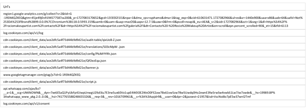 Realizado un análisis de la página web, con una aplicación de edición, para determinar las cookies utilizadas, debemos informarle que nuestra web utiliza las siguientes Cookies y Beacons: